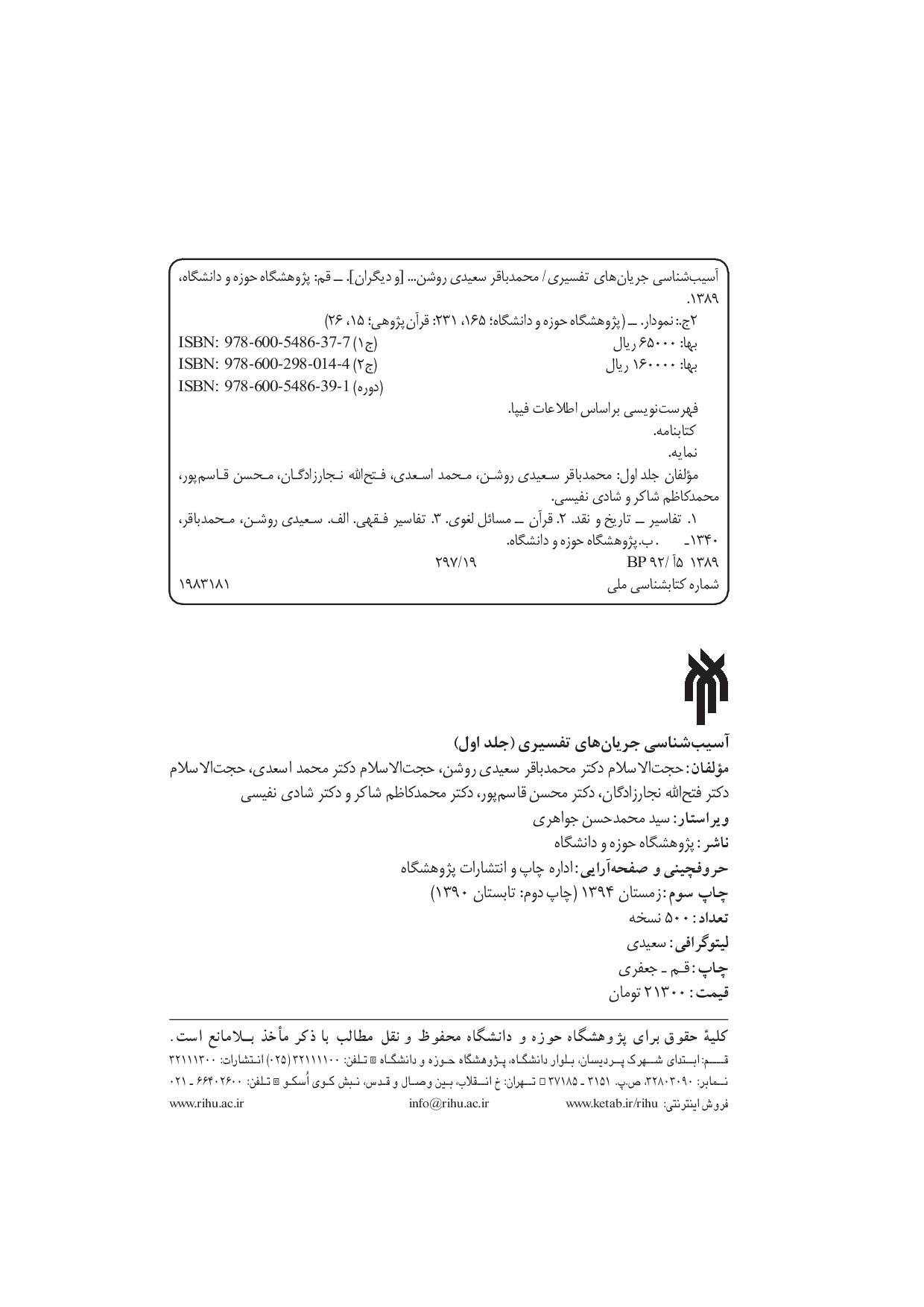 آسیب‌شناسی جریان‌های تفسیری جلد اول | سامانه بازنمای دستاوردهای قرآنی