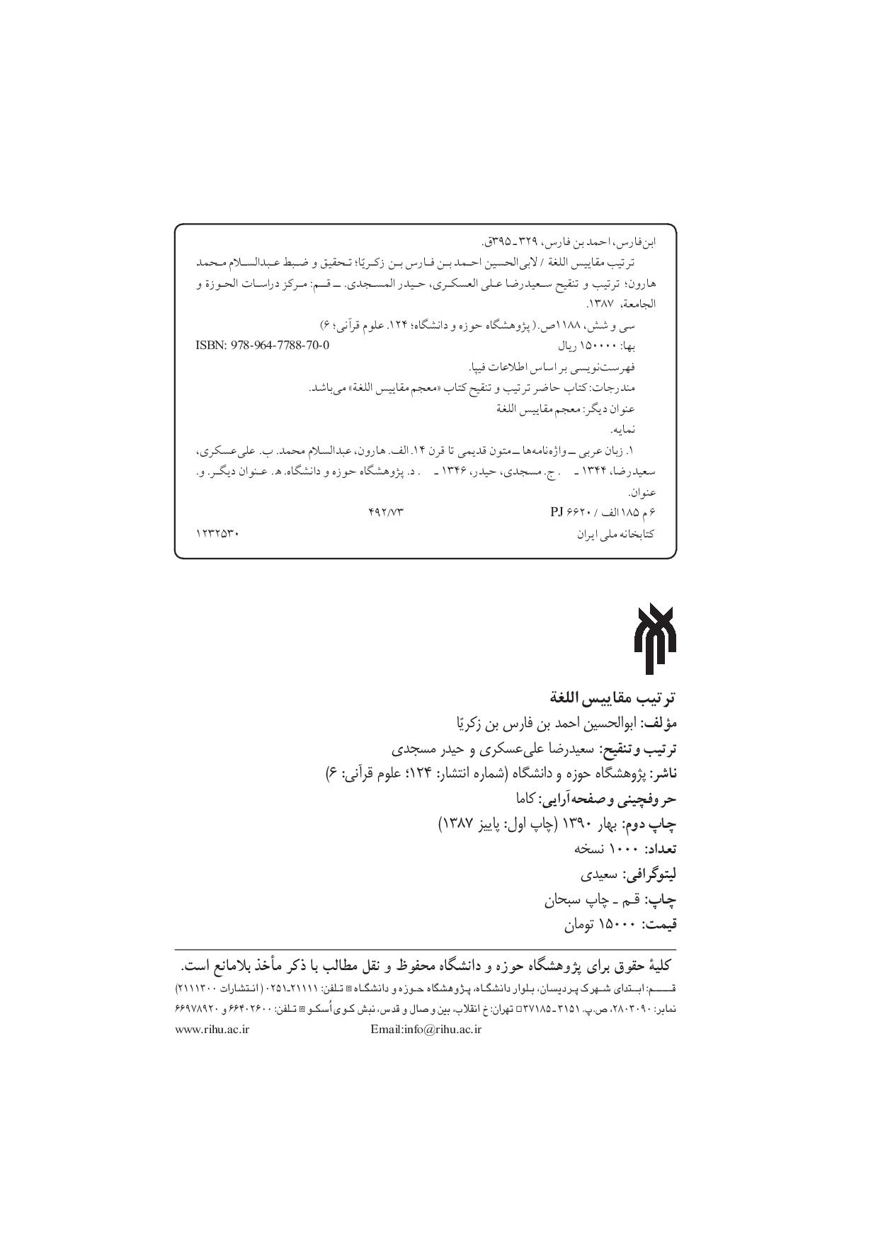 ترتیب مقاییس اللغه | سامانه بازنمای دستاوردهای قرآنی