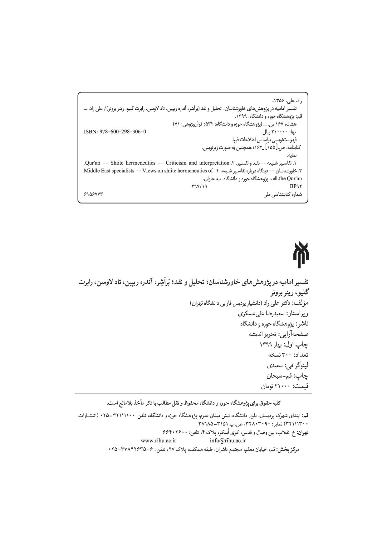 تفسیر امامیه در پژوهش‌های خاورشناسان | سامانه بازنمای دستاوردهای قرآنی