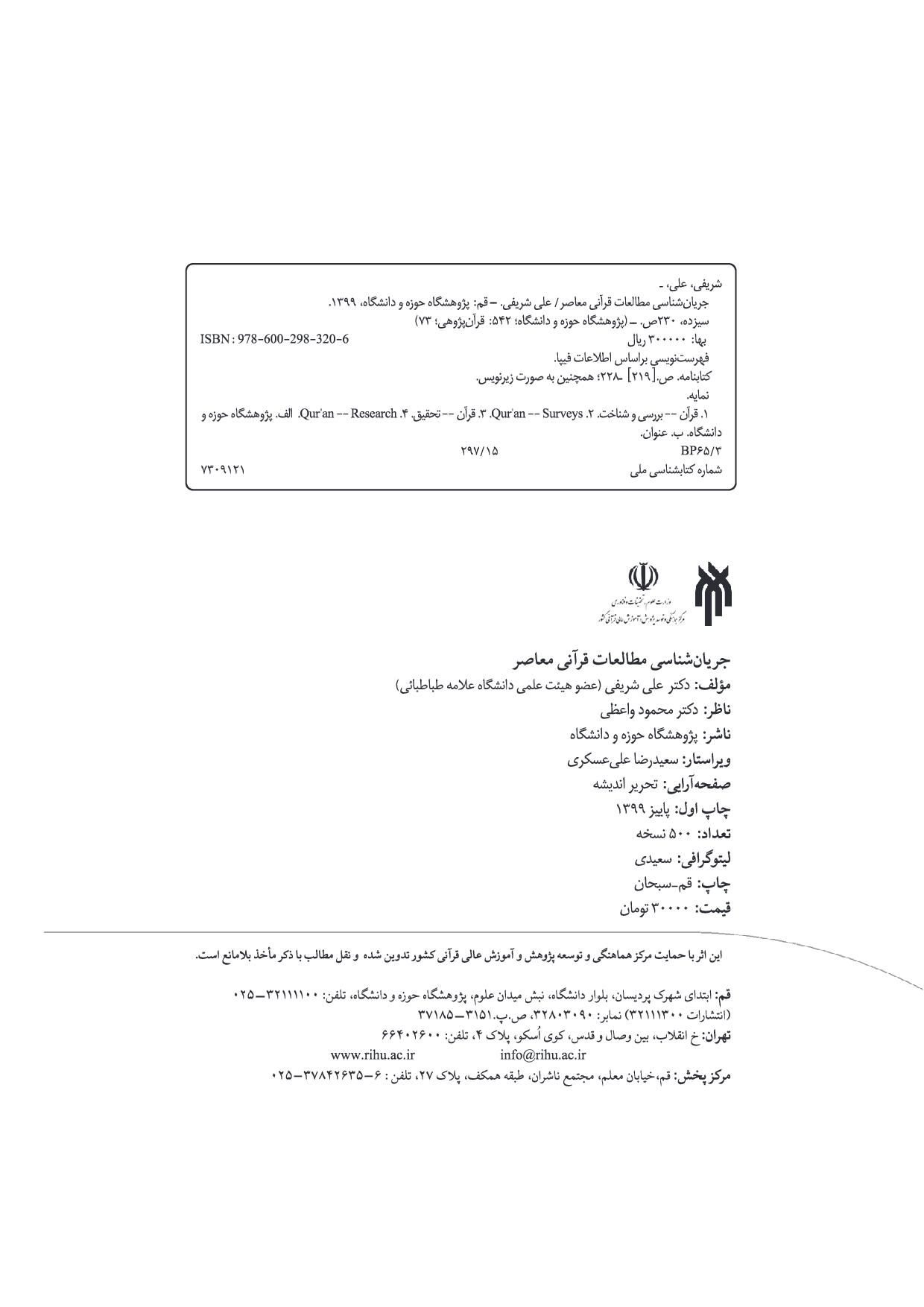 ثبت کننده دستاورد: پژوهشگاه حوزه و دانشگاه