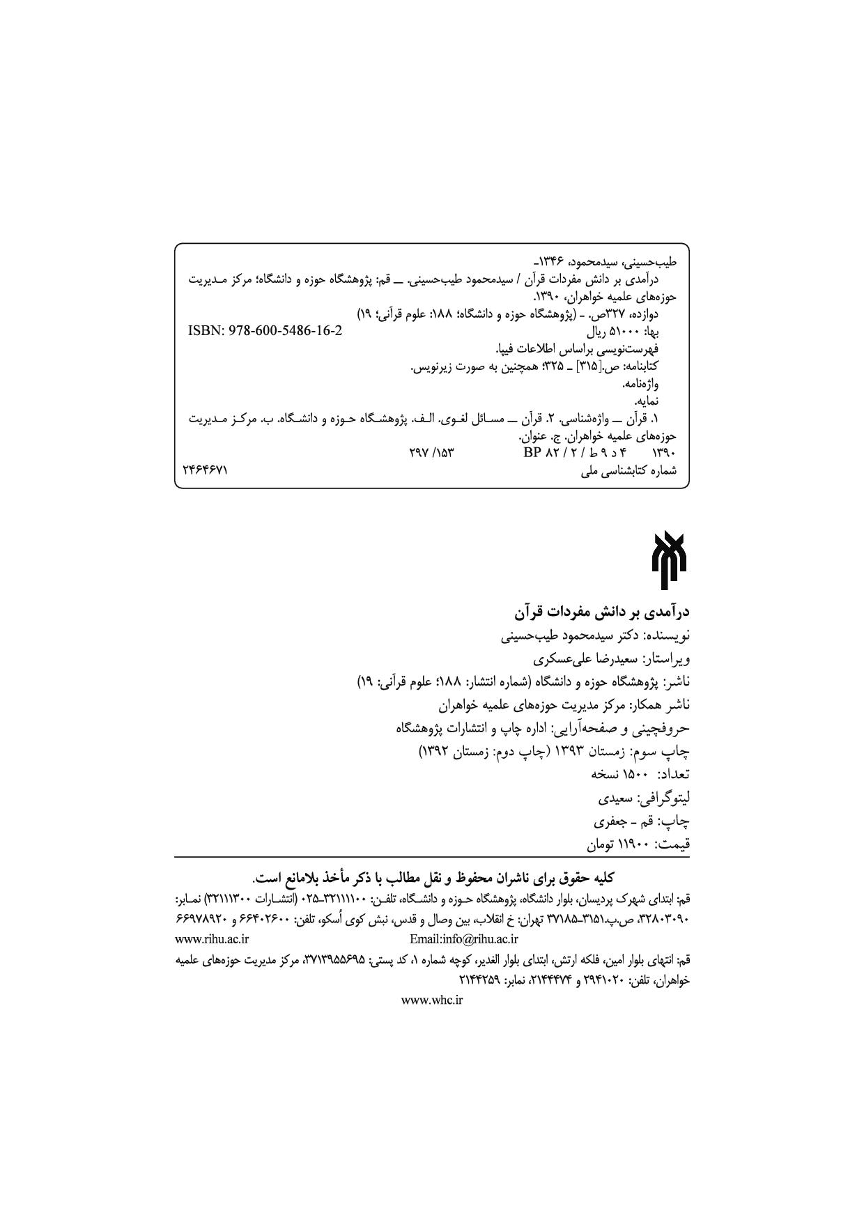 این اثر در دو بخش تنظیم شده است. بخش نخست در نه فصل به مباحث نظری مفردات قرآن اختصاص یافته که این مباحث را در تفسیر بررسی میکند: منابع معنیشناسی کلمات قرآن، نقش ترادف، اشتراک لفظی، اضداد، وجوه و نظائر، اشتراک معنوی، چند معنایی، معربات و لهجههای مختلف قبائل عربی. در این بخش تلاش شده با ذکر مثالهای قرآنی به مباحث کتاب جنبه کاربردی بخشیده و مطالعه آن برای خواننده دلنشین گردد. بخش دوم کتاب به معنیشناسی پنج واژه اساسی، خشیت، ذنب، ظنّ، سقی و قیامت اختصاص دارد. در معنیشناسی این واژهها، تکیه اصلی بر فرهنگ عربی و قرآن کریم بوده است به گونهای که یک دانشجوی کارشناسی ارشد بتواند به صورت روشمند با تأمل و دقت در کاربردهای لغوی یک واژه و با تکیه بر سیاق آیات مشتمل بر آن واژه به اجتهاد در معنای لغت بپردازد.