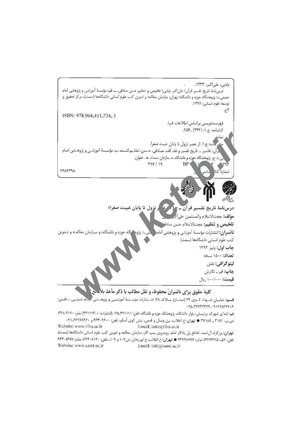 درس‌نامه تاریخ تفسیر قرآن جلد اول