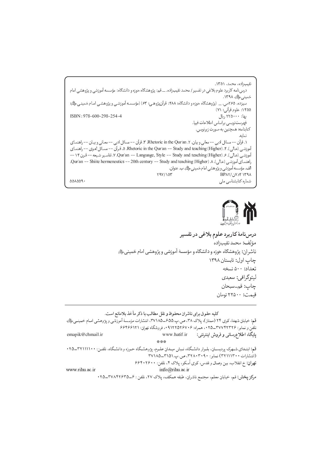 درس‌نامه کاربرد علوم بلاغی در تفسیر