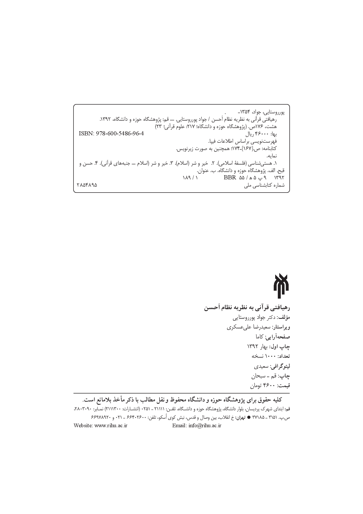 تصویر صفحه شناسنامه کتاب: