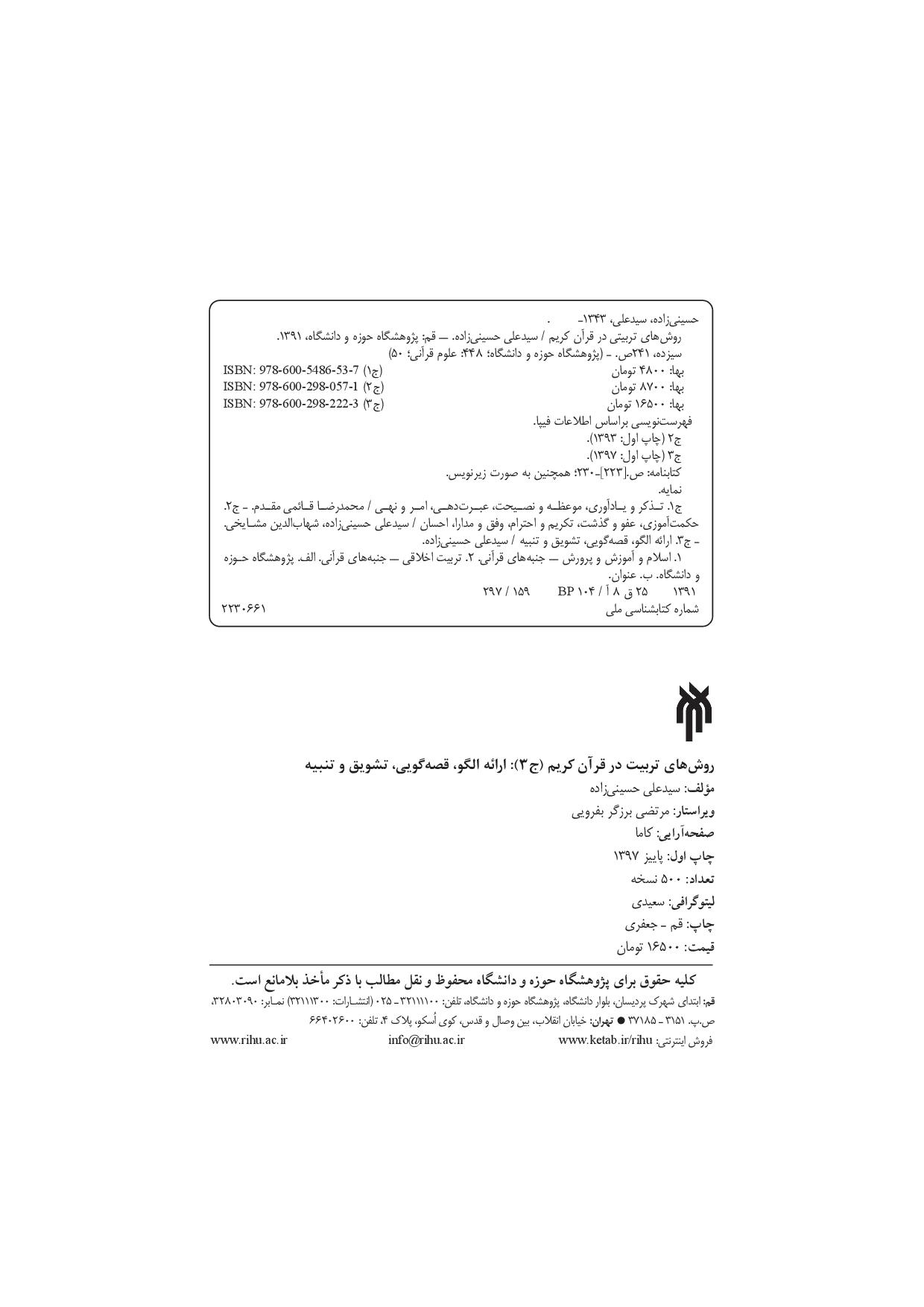 روش‌های تربیتی در قرآن جلد سوم | سامانه بازنمای دستاوردهای قرآنی