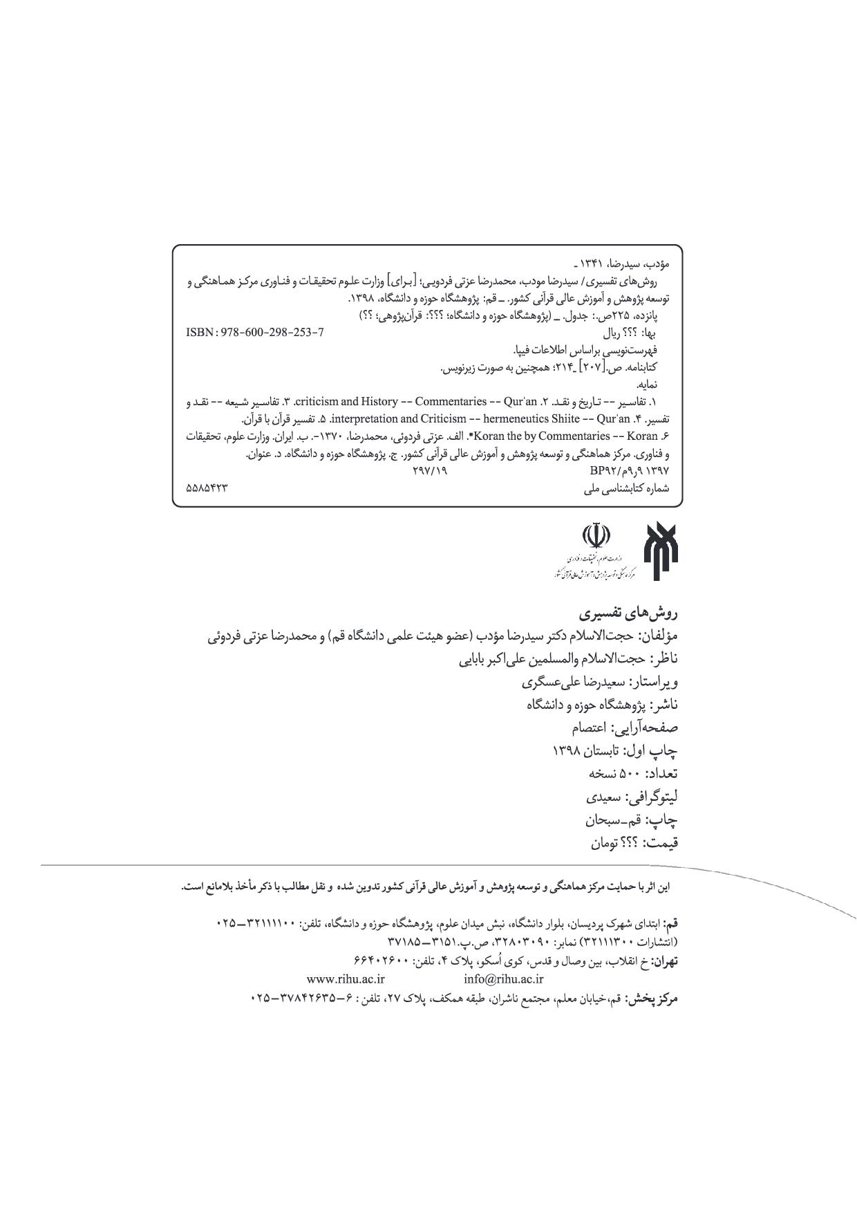 مفسران فریقین به خصوص مفسران امامیه از عصر رسالت تا کنون برای فهم معانی و مقاصد آیات قرآن کوشش نموده و هر یک با توجه به مکتب تفسیری خویش، روش و گرایش خاصی را در تفسیر قرآن انتخاب نموده اند. در کتاب درسنامه روشهای تفسیری به بررسی روشها و گرایشهای تفسیری پرداخته و تلاش شده تا در شانزده درس روشهای تفسیری قرآن به قرآن، روایی، عقلی و نیز گرایشهای تفسیری ادبی، کلامی، علمی، اجتماعی و عرفانی بررسی شود. در ذیل هریک از دروس به مطالبی از جمله مفهوم شناسی، پیشینه، مبانی، آسیب ها و مهمترین تفاسیر هر یک از روشها و گرایشهای تفسیری اشاره شده و در پایان هر درس نیز چکیده، پرسش، پژوهش و منابع برای مطالعه بیشتر بیان شده که مناسب است دانشجویان گرامی با همکاری استادان محترم در یادگیری مباحث کتاب حاضر به آنها توجه بیشتری داشته باشند.