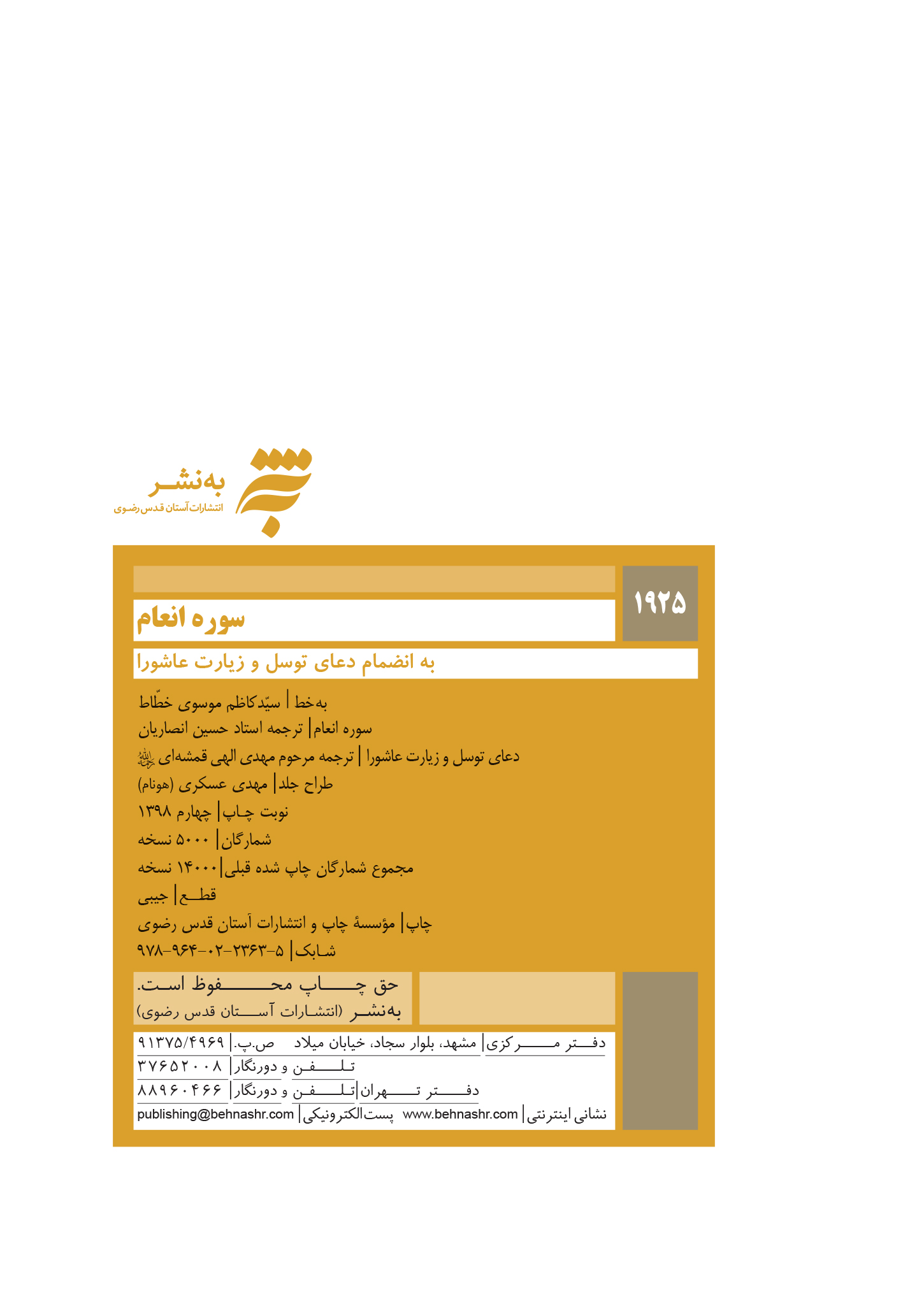سوره انعام به انضمام دعای توسل و زیارت عاشورا