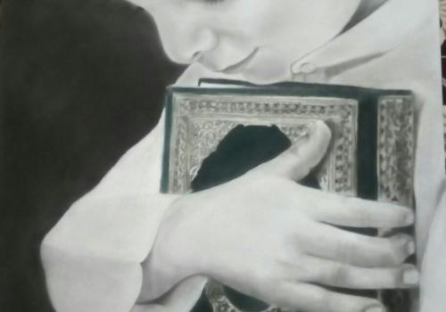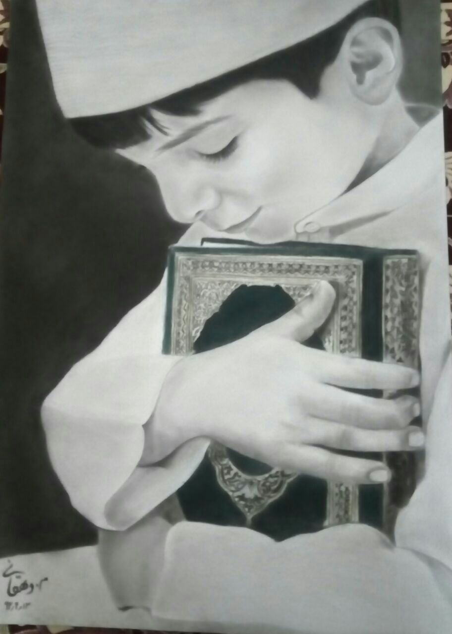 سیاه قلم(تصویر کودک همراه با قران)