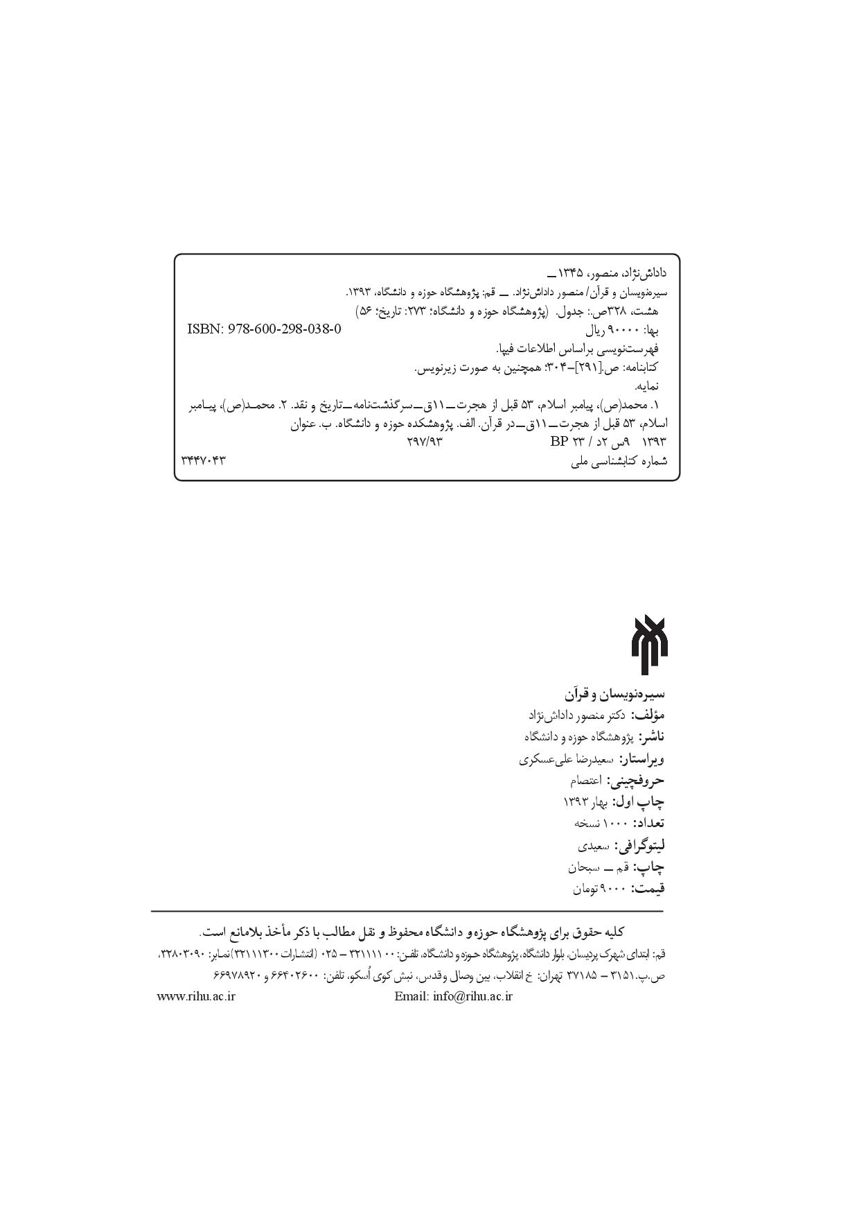 سیره نویسان و قرآن | سامانه بازنمای دستاوردهای قرآنی