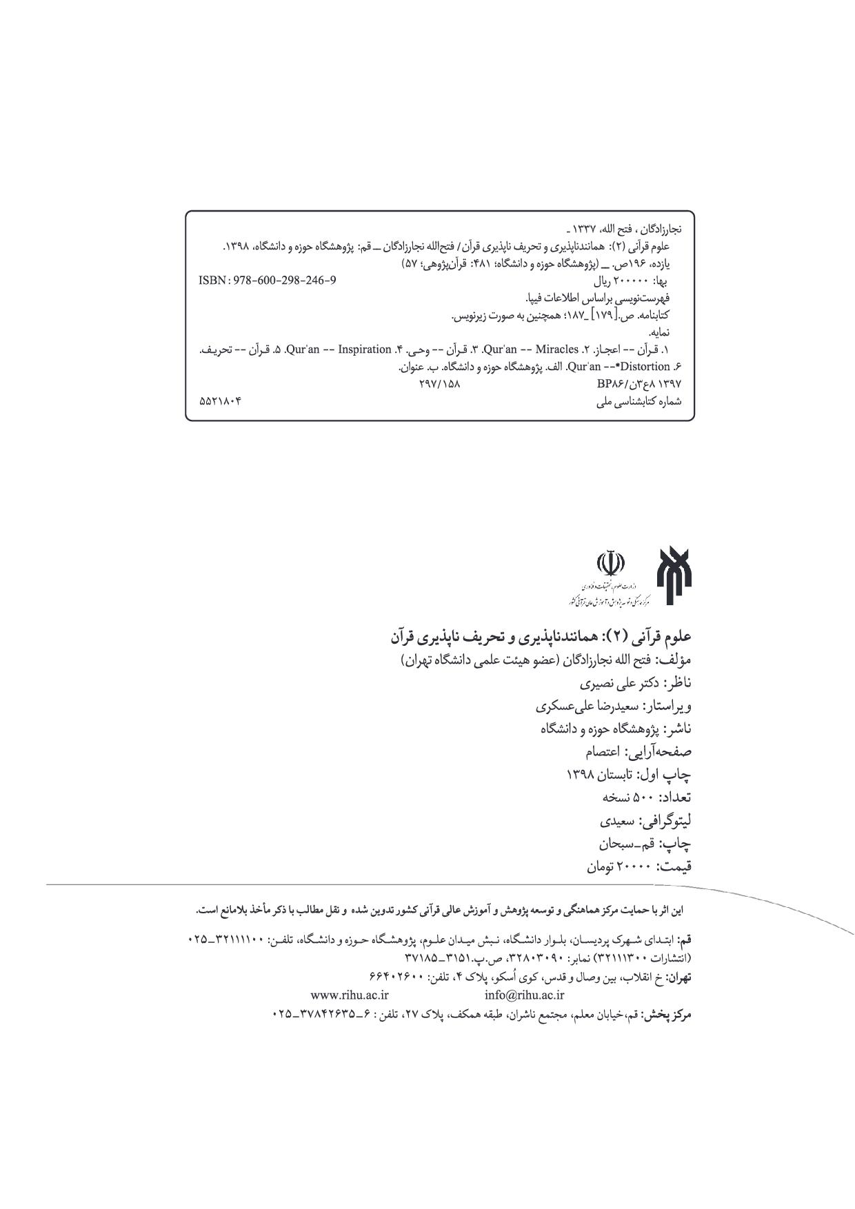 علوم قرآنی2(اعجاز، تحریف ناپذیری)