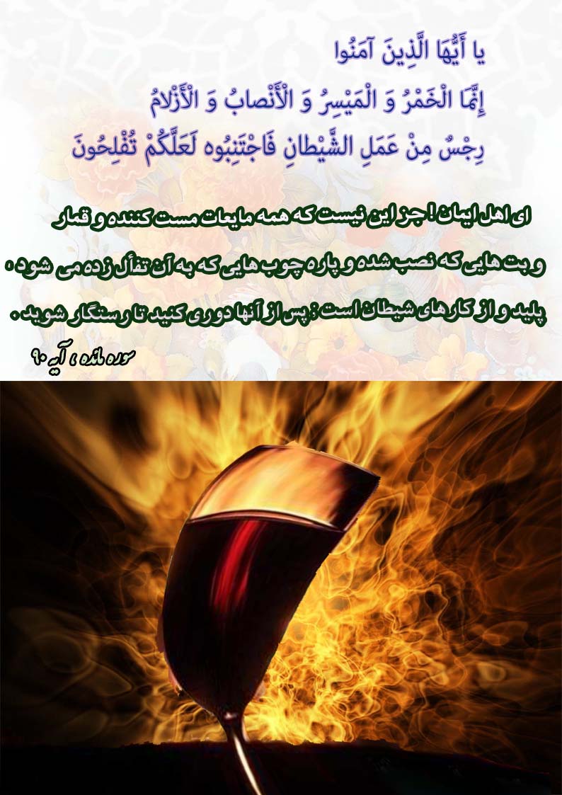 عکس نوشته در خصوص ایه 90سوره مائده-مزگان معینی طلبه سطح3موسسه آموزش عالی حوزوی مجتهده امین