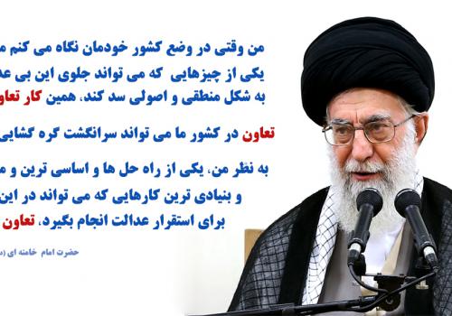 عکس نوشته سخن رهبری در خصوص بی عدالتی و تعاون