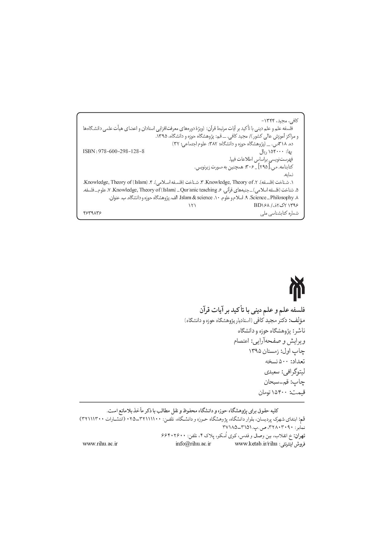 ارزیابی و موضعگیری عالمانه در قبال ایده علم دینی مترتب بر فهم معنا و رویکردهای علم دینی و دلایل موافقان و مخالفان است. از این رو پرسش تحقیق در مورد محل نزاع در علم دینی است. رویکرد غالب بر این جستار فلسفی، از نوع فلسفههای مضاف و درجه دوم (فلسفه علم) است. به عبارت رساتر برای فهم بهتر، نقد و تحلیل علم دینی شایسته است به وجودشناسی علم دینی (اثبات موضوع علومدینی) معرفتشناسی علمدینی (بررسی فرآوردههای علومدینی) و روششناسی علم دینی (بررسی فرآیند شکلگیری علم دینی) از منظر مدعیان آن توجه شود. هدف این اثر فهم، نقد و تحلیل ادعا و دلیل مدعیان و مخالفان علم دینی است. در این جستار بر آن هستیم که ایده علم دینی را با نگرشهای موجود در فلسفه علم مورد کنکاش قرار دهیم و در پایان هر بحثی نظر قرآن را درباره آن مورد جویا شویم. نتیجه تحقیق این است که علم هویتی تاریخی و جمعی دارد. تولید علم امری آگاهانه و برنامهریزی شده نمیتواند باشد. اما نظریهپردازی میتواند امری فردی، آگاهانه و با برنامه باشد. در نتیجه طرح نظریهپردازی دینی در پرتو پارادایم اسلامی علوم از طرح علم دینی، درستتر، دقیقتر و اجراییتر به نظر میرسد.