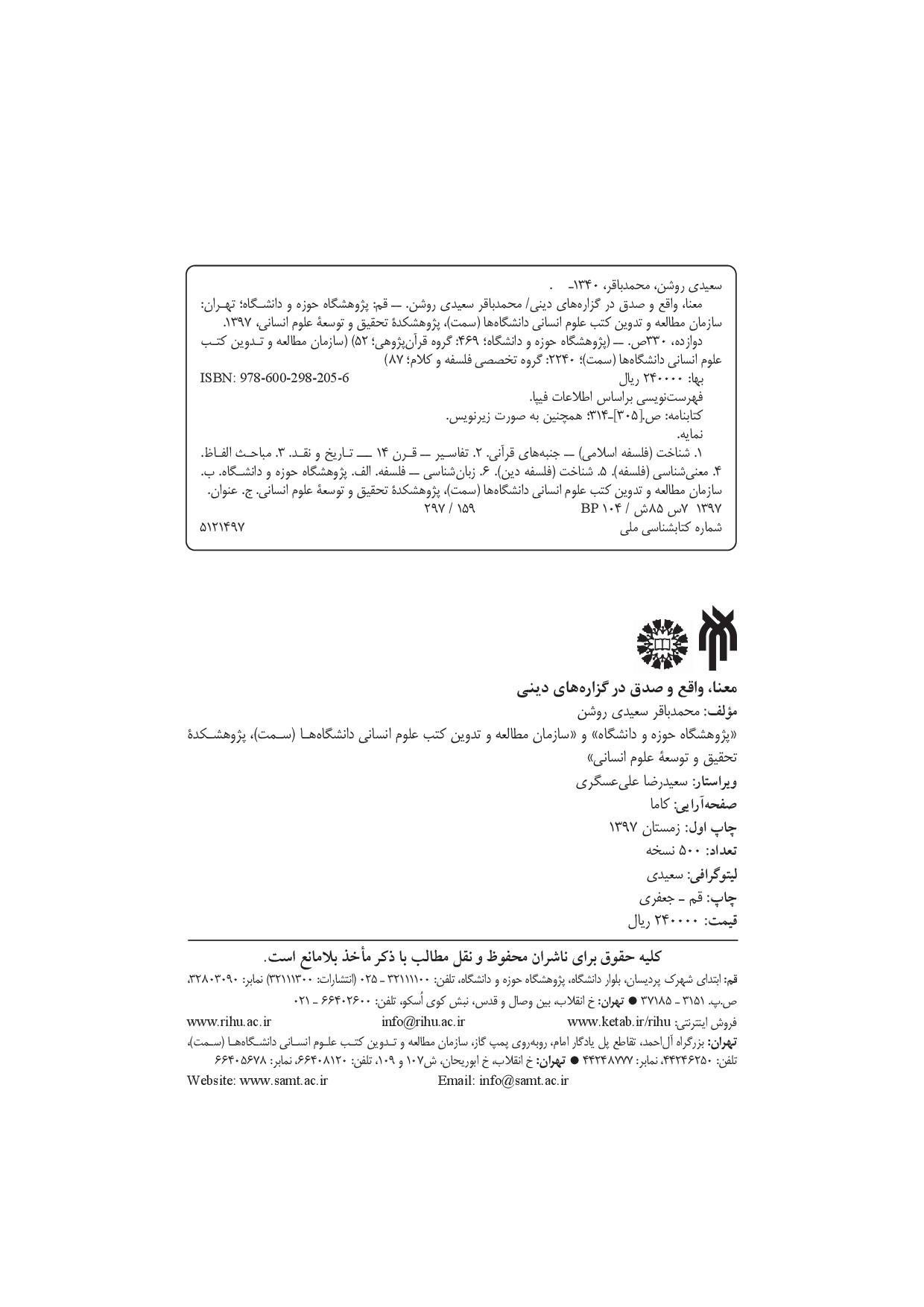 ثبت کننده دستاورد: پژوهشگاه حوزه و دانشگاه