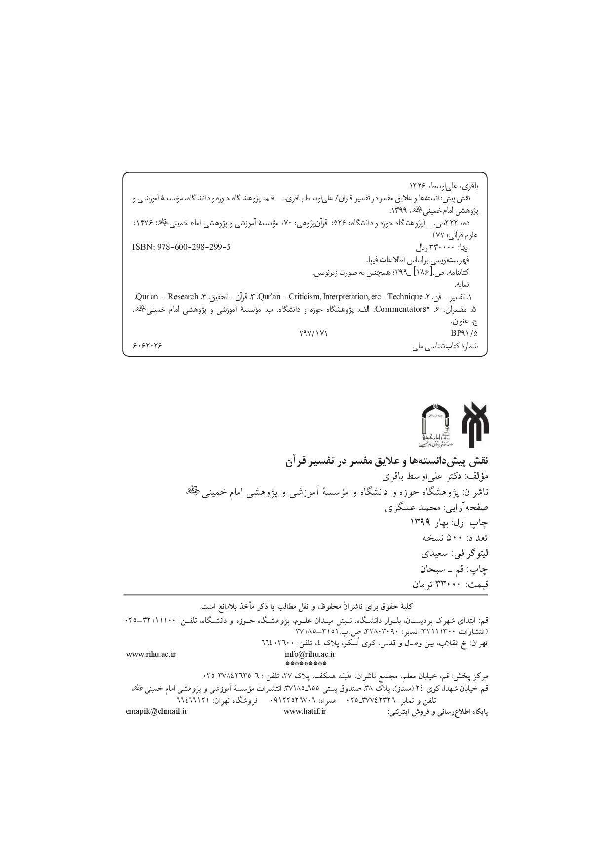 ثبت کننده دستاورد: پژوهشگاه حوزه و دانشگاه