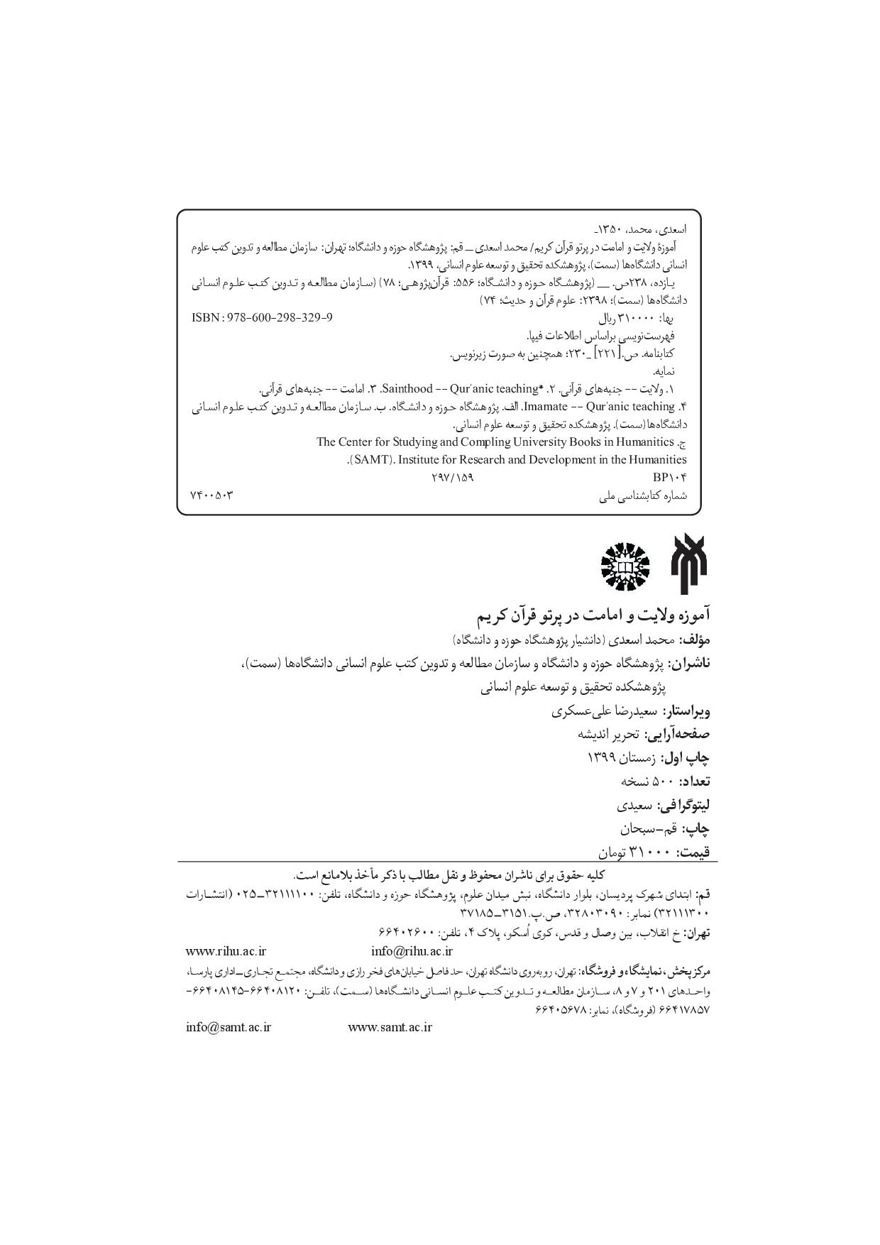 آموزه ولایت و امامت در پرتو قرآن کریم