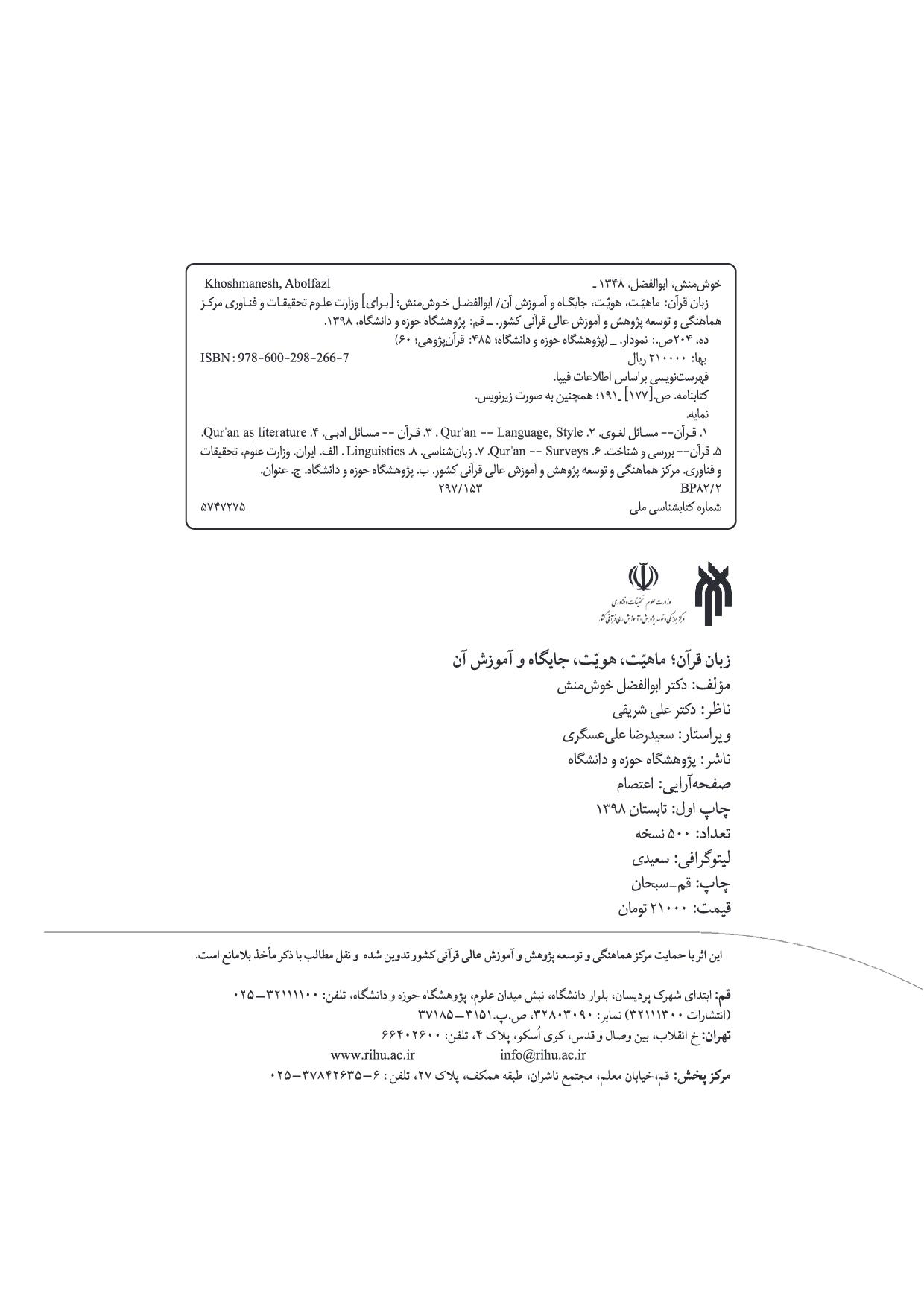 تصویر صفحه شناسنامه کتاب: