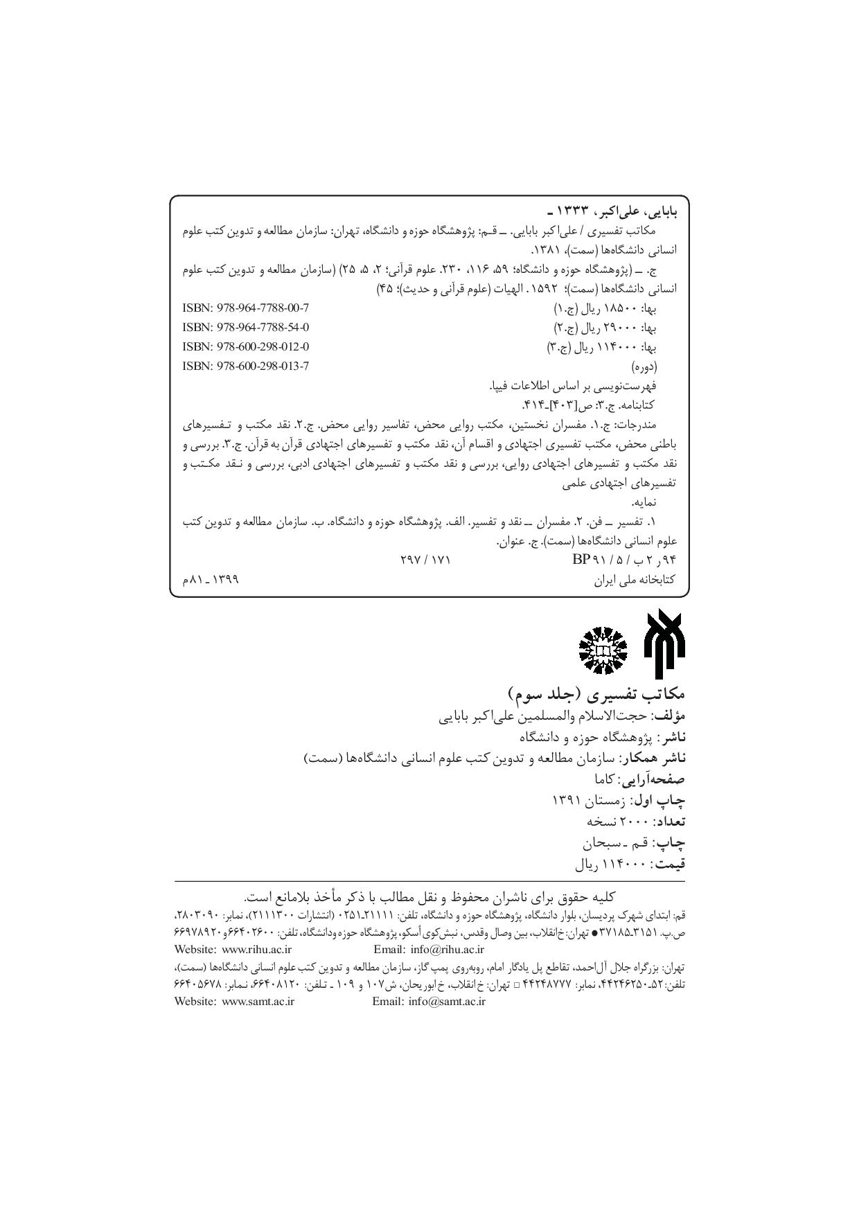 مکاتب تفسیری جلد سوم | سامانه بازنمای دستاوردهای قرآنی