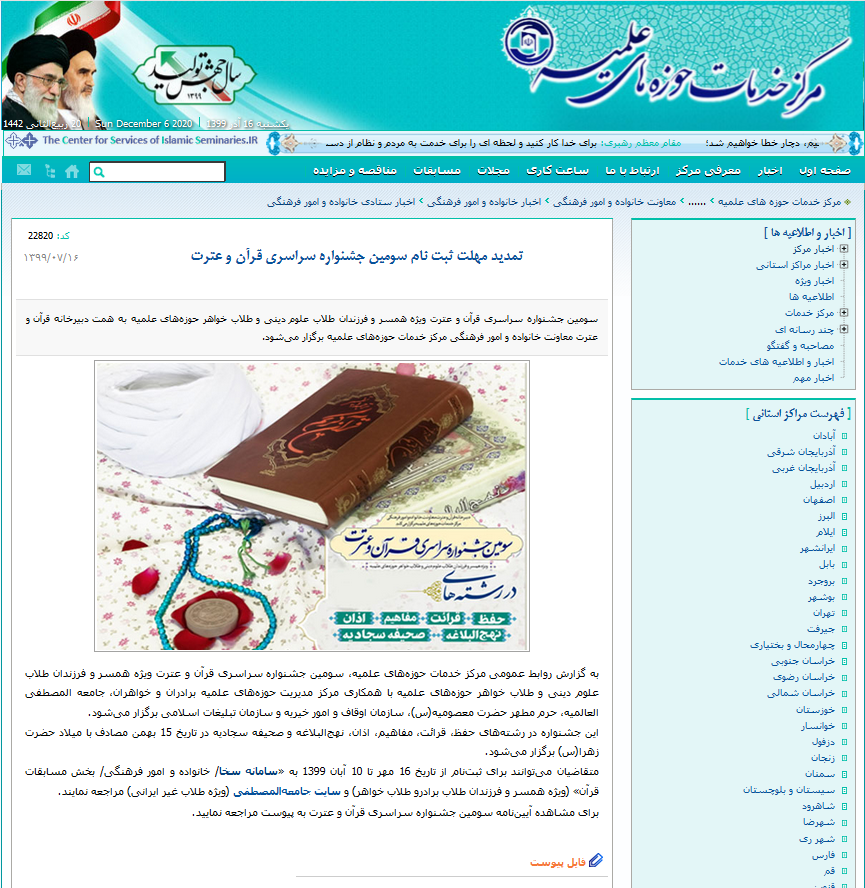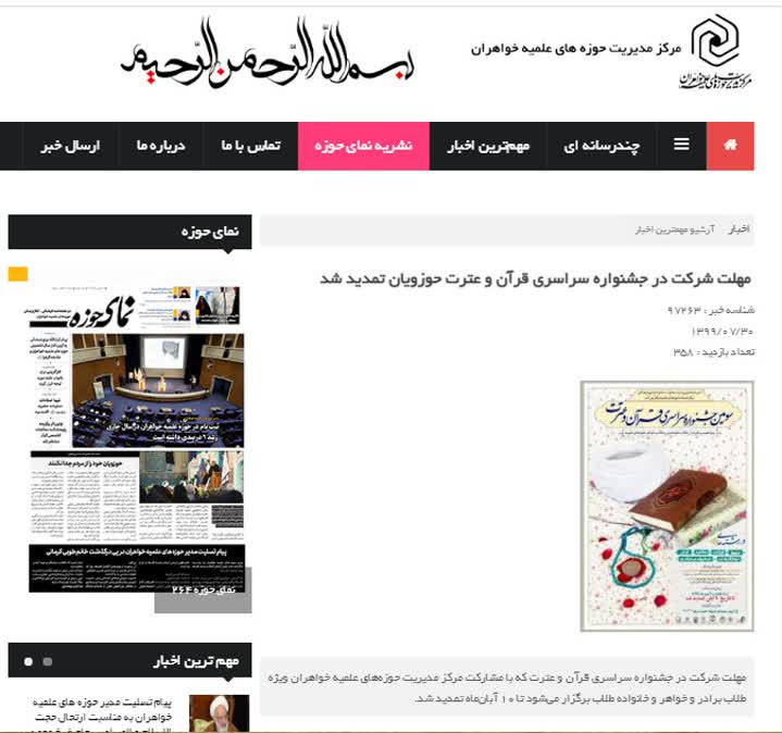 سومین جشنواره سراسری قرآن و عترت مرکز خدمات حوزه های علمیه